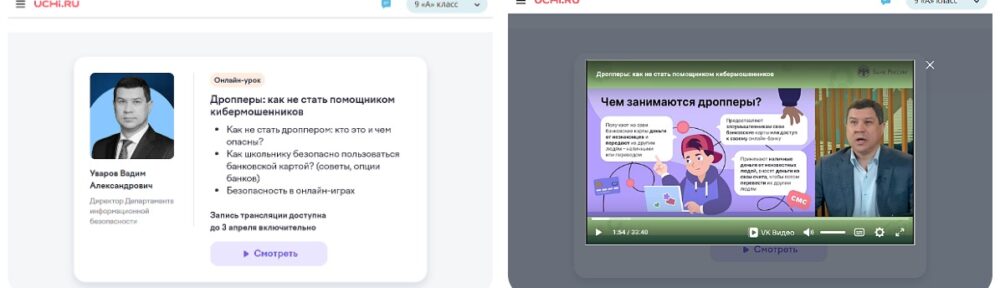 В рамках урока воспитанники посмотрели фильм, в котором сотрудник Банка России дал полные рекомендации, как не попасть на уловки мошенников.